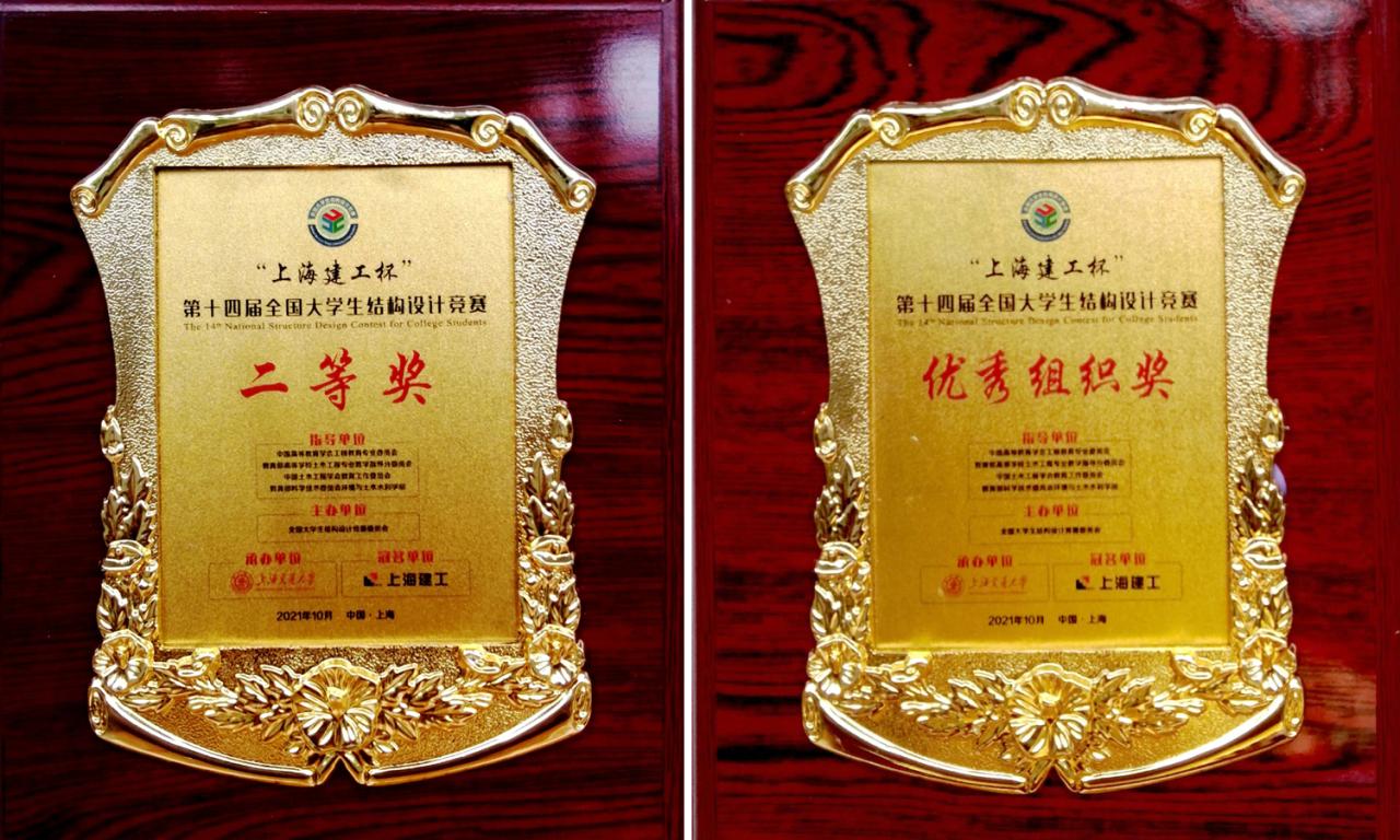 bevictor伟德代表队荣获第十四届全国老员工结构设计竞赛二等奖!参赛队员分别为2019级土木工程专业陈其镕、郭子培和丁睿同学,预备队员为李兆庭同学,领队为bevictor伟德赵菲老师,指导教师为秦术杰老师、赵菲老师和海南城建业施工图审查有限公司黄利高级工程师。竞赛于2021年10月14日至17日举行,由上海交通大学承办。