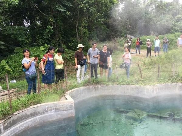 公司博士党员团队与美国纽约州立大学教授Refaat Hussein组成志愿专家组,在保亭县水务局副局长陈宗耀、县七仙岭温泉基础公司相关负责人的带领下,现场考察了七仙岭温泉眼、酒店温泉设施、温泉调节池以及县城污水处理厂,七仙岭温泉基础公司(温泉开发运营方)和保亭县水务公司(县城污水处理厂运营方)有关人员向专家组介绍了温泉开发利用、县城污水处理厂运营管理等情况。