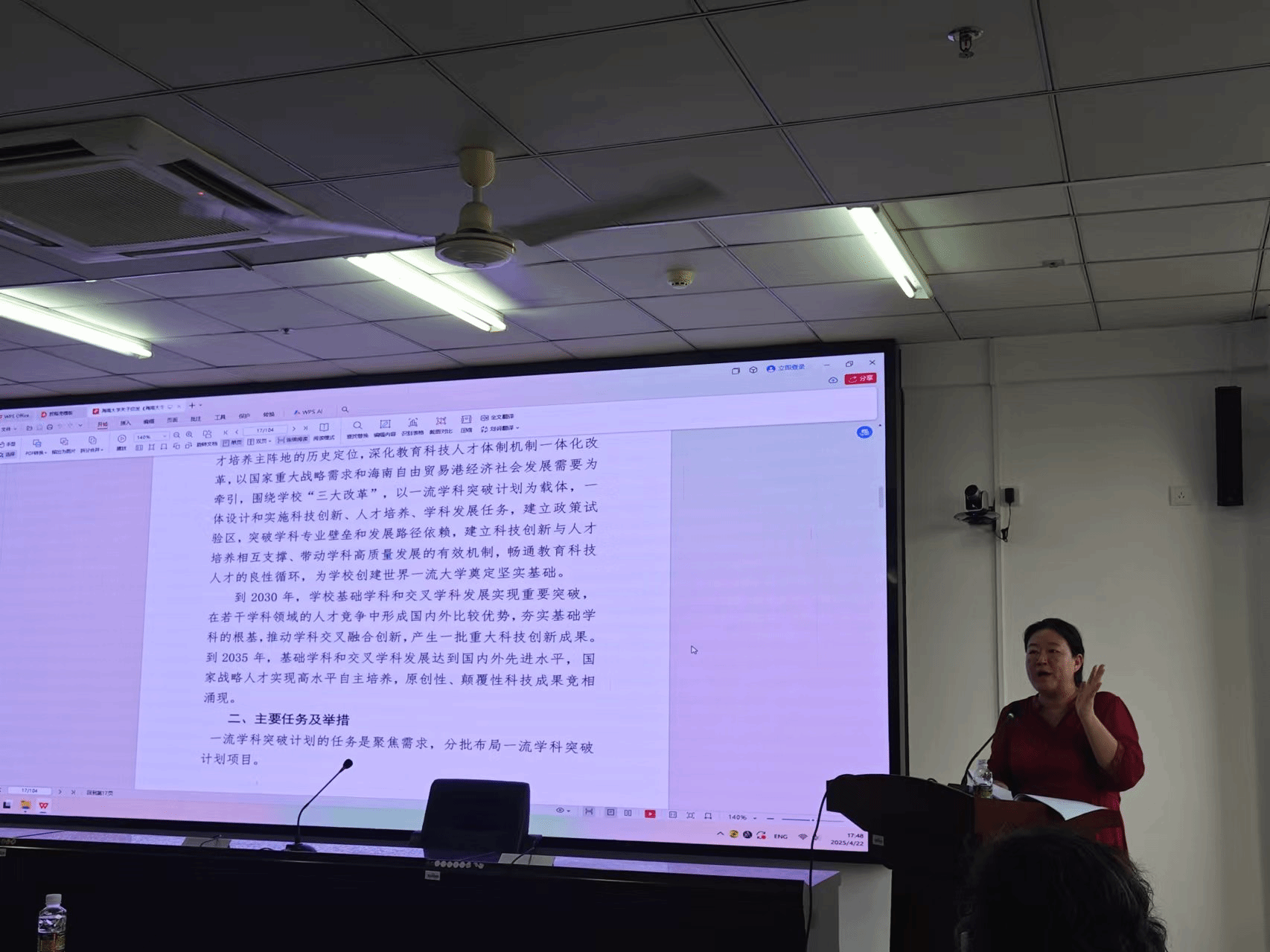 新一轮审核评估的目的、意义、工作程序和形式、评估专家常用的考察方法等,并就如何提升课堂教学效果、强化课程思政建设提出具体建议。她指出,教师应主动适应高等教育新形势,以评促改、以评促强,切实提升公司产品水平。