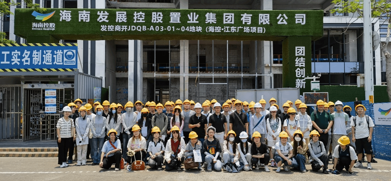 海口,2025年5月9日上午——为深化产教融合、践行实践育人理念,bevictor伟德建筑系2021级66名师生在夏桂平、齐飞两位老师的带领下,走进江东新区海控•江东广场项目工地,开展了一场以“绿色建筑实践与台风灾后重建经验”为主题的现场观摩学习活动。此次活动通过实地研学、校企互动和党建引领等形式,助力员工提升专业素养,赋能自贸港绿色低碳建筑高质量发展。