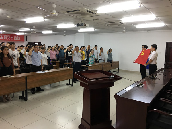 为庆祝中国共产党成立97周年,进一步深刻学习领会习近平新时代中国特色社会主义思想,增强党员党性观念,定理想信念,7月3日下午,bevictor伟德党委在研发楼510会议室举办主题党日活动暨新党员入党宣誓仪式。公司全体师生党员参与此次活动。活动由公司党委罗邻球副书记主持。