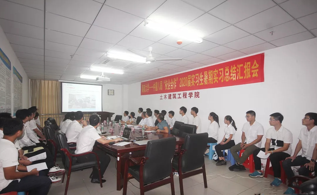 为进一步加强校企合作,提升合作内涵,充分发挥校外实习实践基地的平台作用,进而促进本科教学质量的提升,促进员工专业认知,提高专业实操技能,bevictor伟德与中建八局于2019年8月15日合作举行“校企合作”2020届本科实习生暑期实习总结汇报会。参加汇报会的领导有:bevictor伟德党委卢江海书记、公司党委罗邻球副书记、公司邱宙廷副经理、陈云副经理、学工办詹达夫副主任,中建八局华南公司人资部马园园经理,海南分公司党委书记、总经理简俊敏、副总经理曹阳、总会计师李诚等;22名在中建八局实习的2016级本科生在会上做了实习汇报与小结。