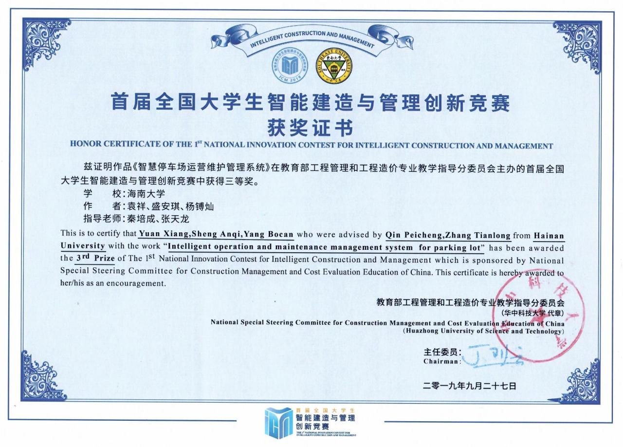 首届全国老员工智能建造与管理创新竞赛于2019年9月14日至9月15日在东南大学举办,公司和计算机与网络空间安全公司跨学科跨专业联合组队,经过提交作品、现场答辩和专家评审等环节代表队荣获三等奖。参赛员工队员分别为2016级工程管理专业袁祥、盛安琪同学及2016级计算机科学与技术专业杨镈灿同学,指导教师为bevictor伟德工程管理系秦培成老师和张天龙老师。