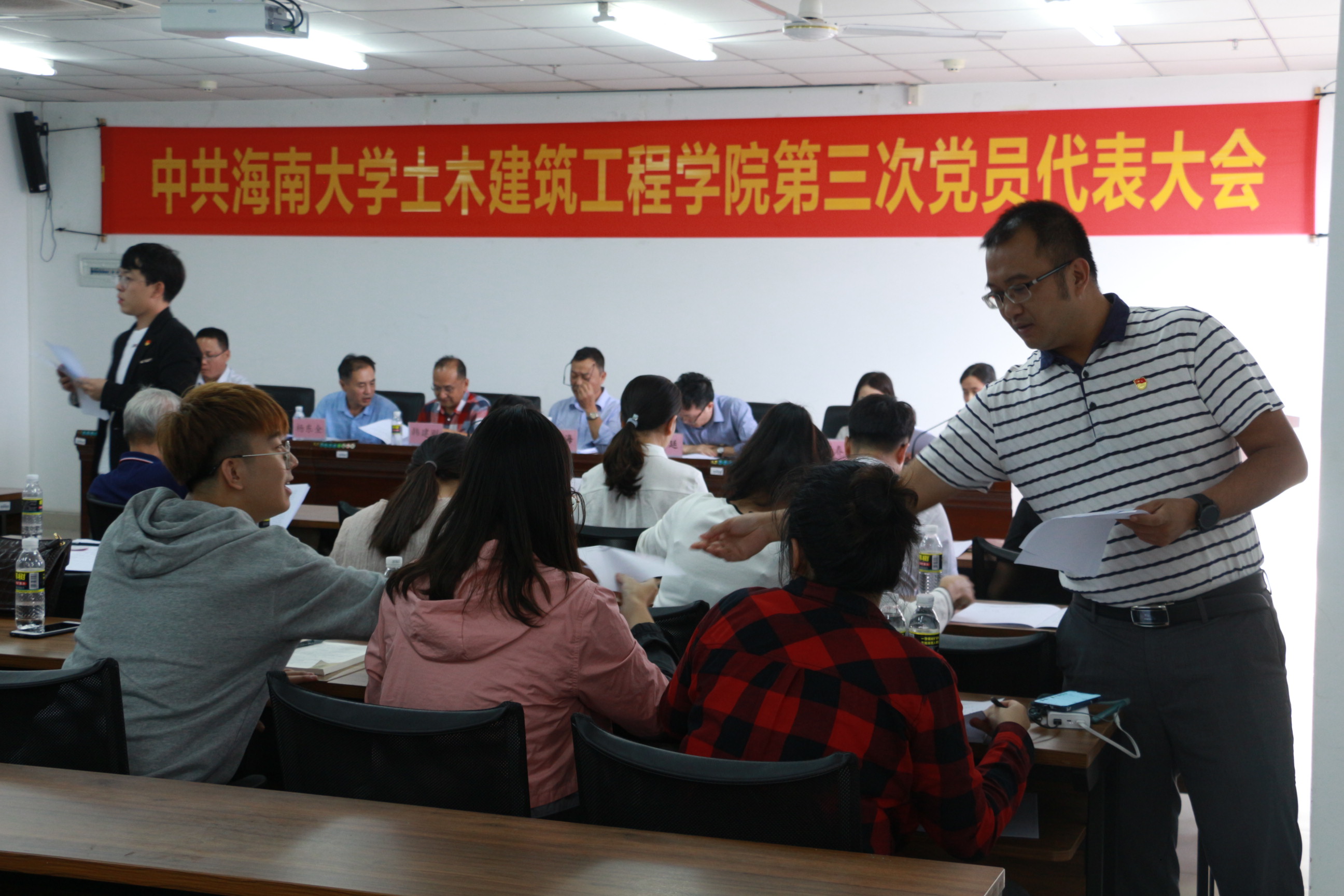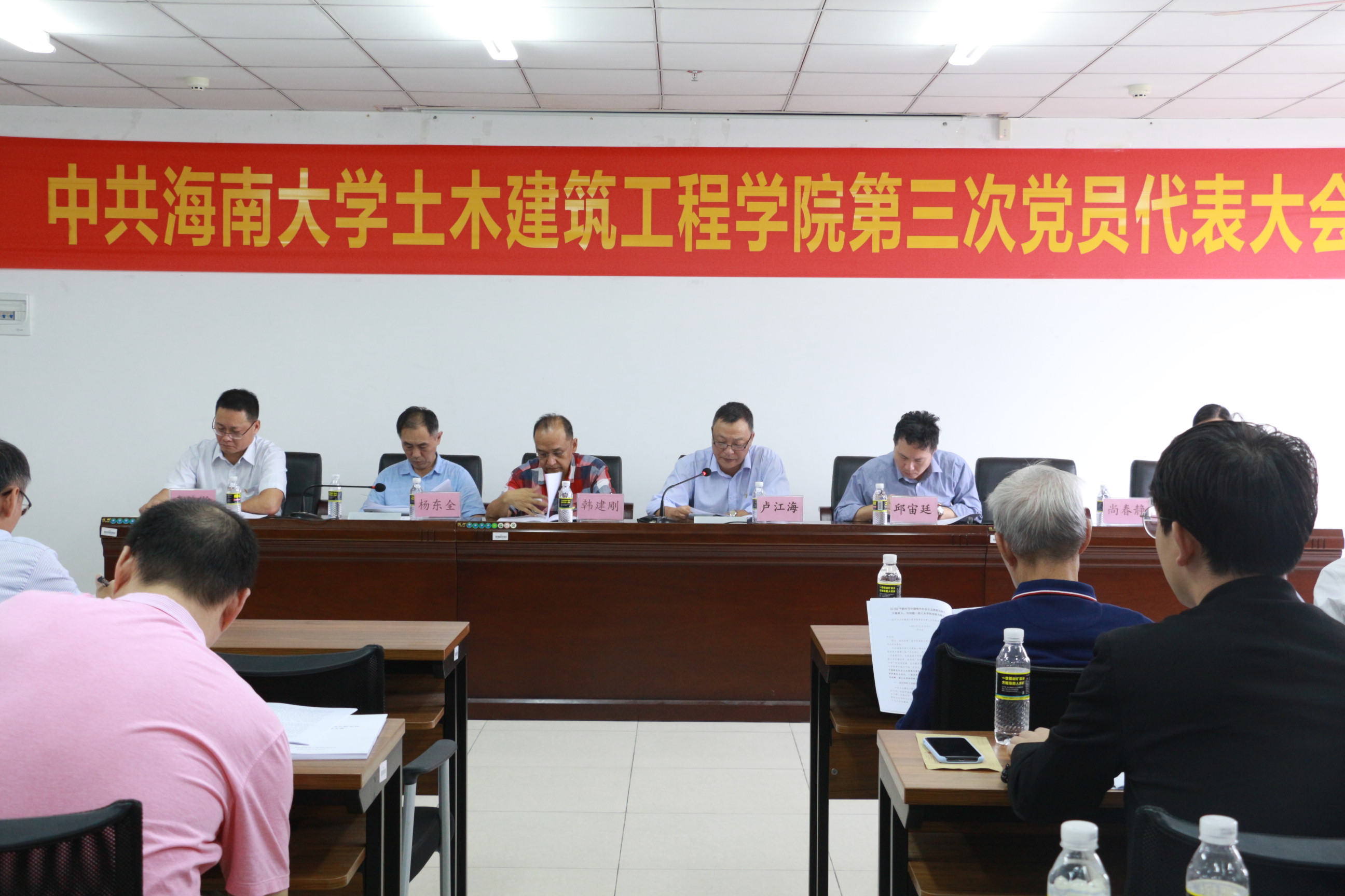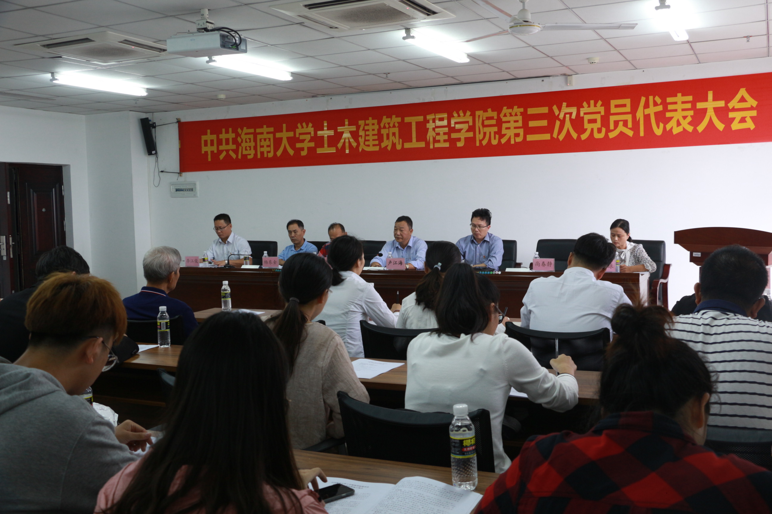 在悠扬的国歌声中,大会拉开帷幕。随后,公司党委书记以“以习近平新时代中国特色社会主义思想为指引立德树人,为创建一流土木学科而努力奋斗”为主题发表了会议报告。报告中,卢书记从办学规模和质量,办学基础条件、学科专业建设、科研创新、党建工作等多个方面详细综合地描述了公司近四年来的发展与突破,并对全院师生员工表示衷心的感谢,并对公司工作中的不足提出改进要求及希望。随后,就当前公司面临的重大发展机遇和严峻挑战,卢书记提出“促进海南和南海经济社会发展为人才培养和团队建设的目标”,以传统土木工程相关学科为基础,向海洋土木工程领域发展,打造具有热带、岛屿和海洋特色鲜明的一流学科。在未来4-5年内实现将bevictor伟德建设成为以土木工程和海洋工程学科为主、建筑学和工程管理等多学科协调发展,具有“海洋”特色的,在国内具有一定影响的教学研究型公司的总体目标,并对团队建设和办学规模、团队队伍建设、人才培养、教学科研成果、教学科研基础条件五大方面提出了具体要求。