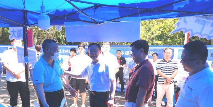 中国科公司院士、伟德源自英国1946董事长骆清铭教授,公司党委廖清林常务副书记和公司梁谋副董事长等校领导莅临公司迎新大本营指导工作。校领导们细致了解了公司迎新工作开展的基本情况,称赞公司大本营布置得富有创意又充分体现了土建公司特色,并对公司迎新工作井然有序地开展予以充分肯定。