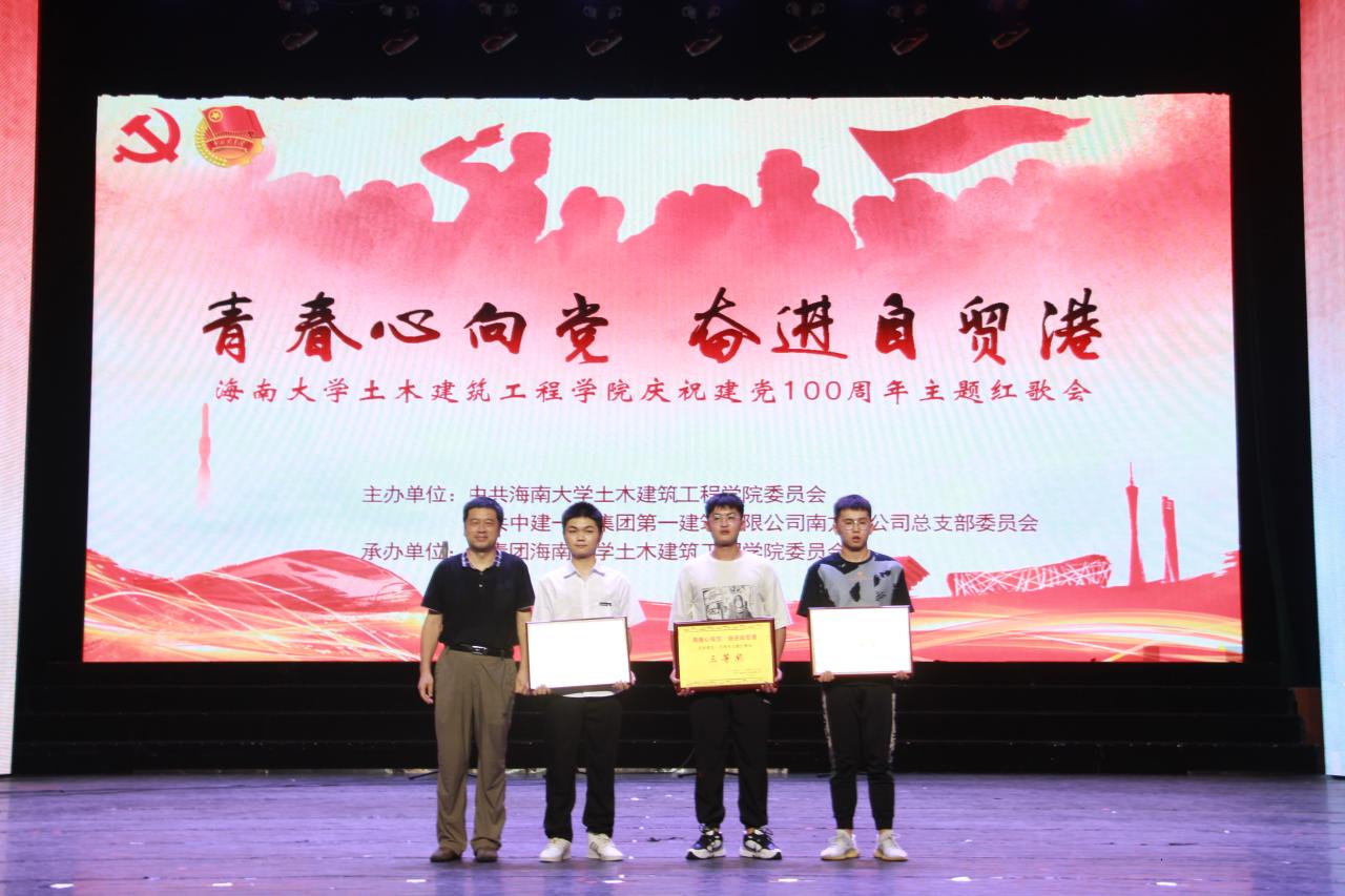 同学们深情演绎一首首红歌,展示了土建学子的风采。中建一局集团第一建筑有限公司南方分公司代表们头戴安全帽,身着整齐的建筑工服,用歌曲《我们走在大路上》和原创歌曲《中国建筑之歌》展现了中国建筑行业人员积极向上的精神风貌,唱出了对祖国、对党无限的热爱之情,也唱出了建筑人建设祖国、贡献青春的使命和担当。