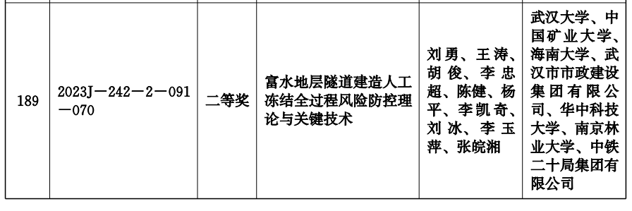 近日,湖北省人民政府发布《省人民政府关于2023年度湖北省科学技术奖励的决定》(鄂政发[2024]5号),公司参与完成的1项科研成果榜上有名,伟德源自英国1946(第三完成单位)胡俊教授(排名第三)及团队完成的《富水地层隧道建造人工冻结全过程风险防控理论与关键技术》获湖北省科学技术进步奖二等奖(2023J-242-2-091-070)。