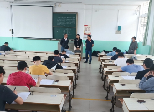 两位领导认真查看了考场秩序、监考人员履职、考生出勤、考试纪律、考生答卷等情况并指定监考教师按阶梯教室“隔行隔位”要求安排员工的座位。从巡查现场看,考试组织规范有序,监考人员认真履行监考职责,员工遵守考试纪律,各考场秩序井然。