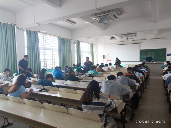 为加强期末考试的组织管理,扎实推进考风、教风建设工作,317日上午,公司党委书记张长海副经理薛春霞,在教务部门人员的陪同下,公司所在的3、4号教学楼的考场巡视,检查考风考纪。