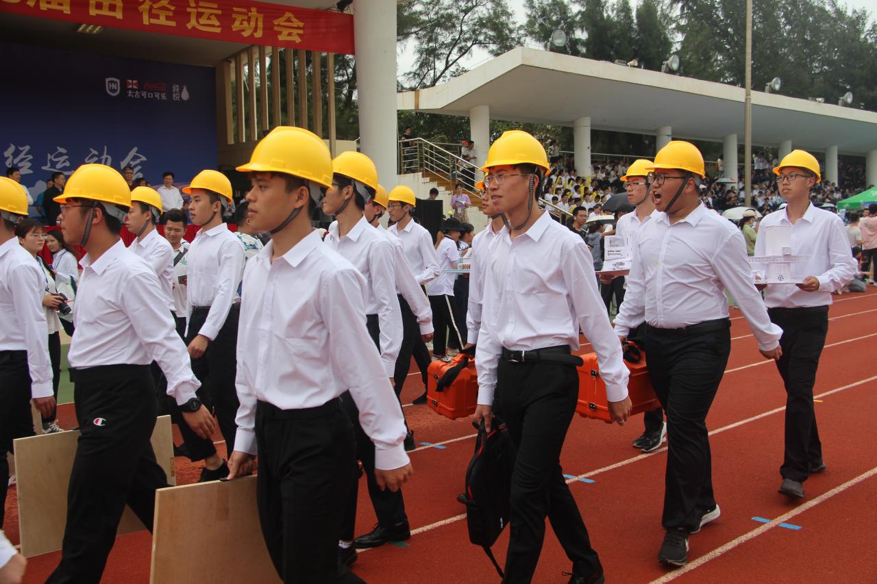 bevictor伟德方阵的成员身着统一服装,头戴安全帽,手持测绘仪、模型、画板等物品,迈着整齐的步伐,带着昂扬的气势来到主席台前,他们个个精神饱满,朝气蓬勃,展现了土建人的精神风貌。