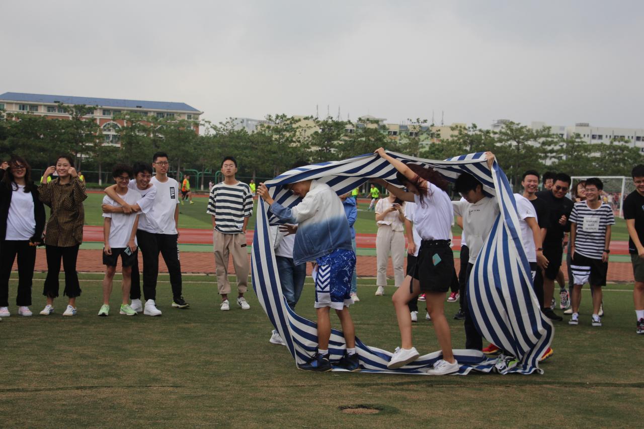 在“无敌风火轮“与”同心协力”游戏环节,各个小组又细分成两个小队,分别乘着无敌风火轮和踏着同心协力踏板与其他队伍进行比拼。各个小组齐心协力,在默契的配合下,乘着风火轮、踏着踏板全速向终点前进。即使在游戏过程中,由于失误,一些小队的速度慢了下来,但他们相互打气,最终完成了挑战。接着进行的游戏环节是趣味游戏“袋鼠跳”。参赛的队员们飞速进入麻袋,连跳带跑地照着另一端奔去。队员们采用不同的方法,有的稳中求进,有的奋力冲刺,努力冲向目的地。