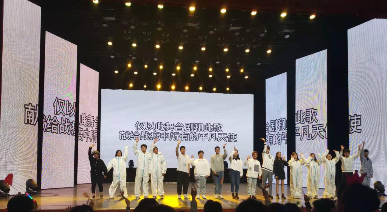 2020年是不平凡的一年,一场突如其来的新冠肺炎疫情席卷全球,给我们的生活带来了巨大的影响。这次疫情中,我们看到了党中央的坚强领导,看到了全国人民的勠力同心。晚会第三篇章:“建功海南,筑时代梦想”,将整场晚会氛围推向了最高潮。公司员工自编自演的抗疫舞台剧《不听劝的她》展现医护工作者的坚韧勇敢2019公司十大歌手代表廖辰东、黄婷、李懿昆、朱梦凡唐瑭深情演绎了抗疫歌曲《平凡天使》,唱出了白衣天使逆行战“疫”的英勇庞春窃、张恩波、贺子阳、尹西垚四位同学以饱满的情感朗诵《你的样子》,配合着抗疫英雄短片的播出,现场很多同学都默默感动落泪这三个节目,是土建学子希望自己的方式向疫情防控中所有默默付出的英雄致敬,向伟大的祖国致敬!