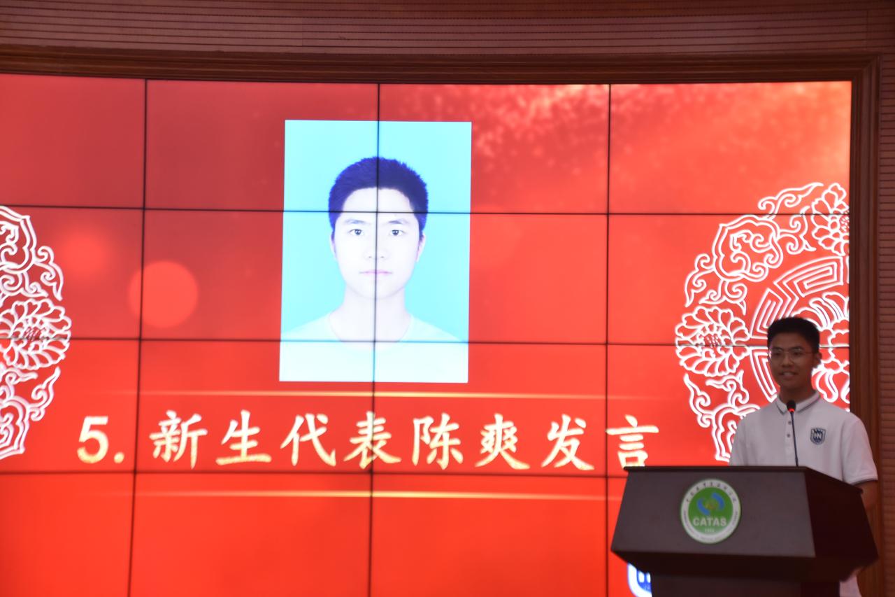 接着,在校生代表尚晓慧同学发言,希望学弟学妹们在大学能确立好人生目标,端正学习态度,为自己的目标努力奋斗。