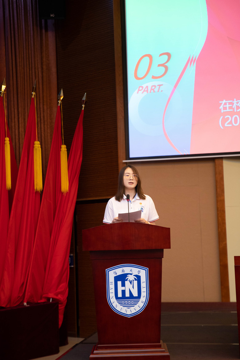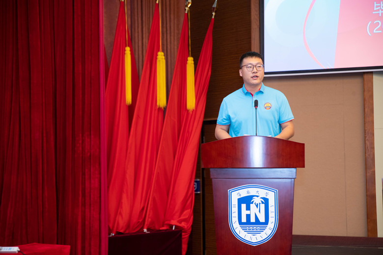 2019级工程管理专业员工张书赫作为在校生代表献上了对毕业生的祝福,表示将以学长学姐们为榜样,在中华民族伟大复兴的接力跑中,跑出青年风采跑出优异成绩,不负时代,不负韶华,不负母校培养,用自己的实际行动为母校增光、为人生添彩、为国家和社会贡献青春力量!