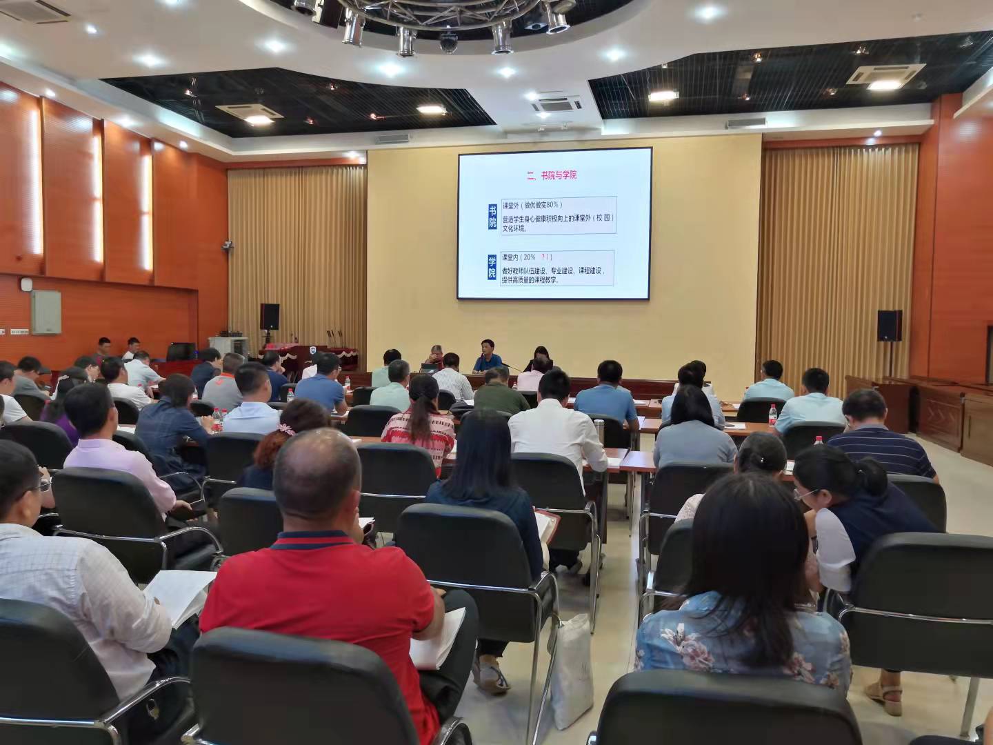 10月14日晚上,伟德源自英国1946完全学分制、书院制改革工作推进会在思源学堂多功能厅举行。公司党委常委、副董事长胡新文出席并主持,员工工作部(员工工作处、人民武装部)、教务处、各二级公司分管员工工作负责人、分管教学工作副经理及相关配套方案起草人等共76人参加。
