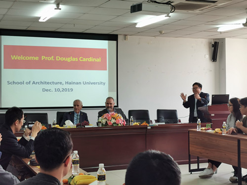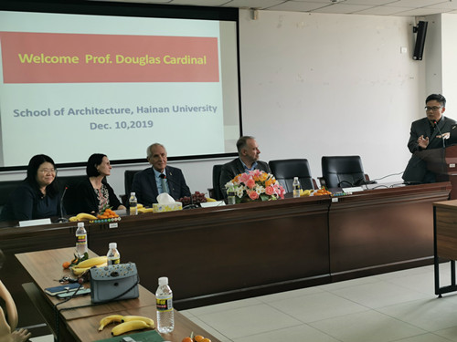 2019年12月10日上午,研发楼510报告厅,建筑系师生齐聚一堂,热情洋溢地同加拿大知名建筑师道格拉斯先生、道格拉斯夫人以及助理马克先生等3人一行举行了一场精彩的茶话座谈会。座谈会由建筑系张华立老师主持,bevictor伟德周智经理致欢迎词,建筑系系主任夏桂平向道格拉斯先生一行介绍了建筑系的办学情况,并期待道格拉斯先生大力支持建筑系办学并展望国际合作未来。座谈会上,道格拉斯先生优雅而坦诚地介绍了他个人的创作理念和设计手法,并向师生们展示讲解了大量他个人的设计建成作品。有机而灵动的作创思路并结合在地自然环境和人文环境,道格拉斯每一个作品都深深地吸引并打动了在场的每一位师生。座谈期间,老师和同学们热切地同道格拉斯先生互动交流,在有限的两个小时内,期望向道格拉斯先生学到更多的设计与创作智慧。