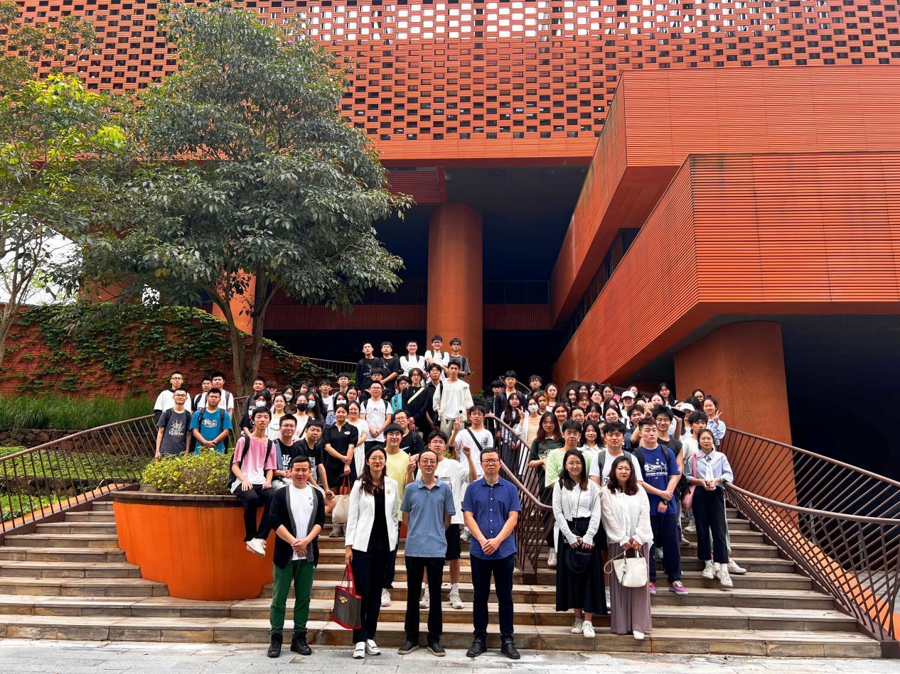 最后,建筑系师生前往了园区内的微城剧场,并对其内部的音乐厅、小剧场、舞台、化妆间等功能空间进行了参观。接待人员细致地讲解了微城剧场声学设计、技术应用、人性化设计等方面内容。