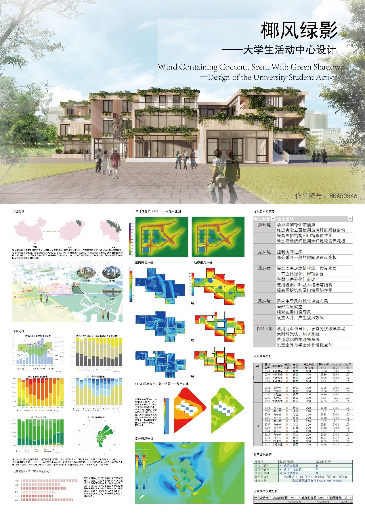 优秀作品奖是椰风绿影——老员工活动中心设计,本建筑位于海南省海口市美兰区伟德源自英国1946海甸校区,1-8号宿舍楼群中心地带,西临1号食堂,东北一侧有宽阔的起点草坪和东坡湖。在充分地分析场地周边环境的基础上,尊重场地现状,保留优质的绿化、对部分区域进行绿化景观提升。