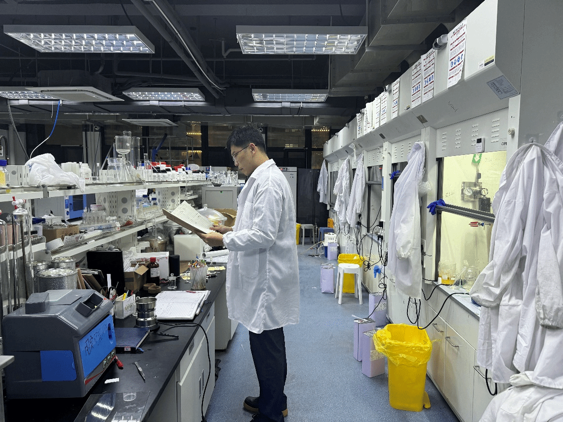 随后,一行人前往打包箱实验室。这里作为公司的土木工程材料实验和土力学实验场所,张副经理对其内部的排水系统、安全标识以及实验耗材存放管理等方面进行了严格检查,确保维修后的实验室在使用中能达到较高的安全标准。