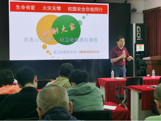 王智科长从基本的消防知识入手,穿插消防事故案例的讲解,通过通俗易懂而且生动的讲解,使师生们对日常工作、生活中易发的火灾及面对火灾应如何自救和扑灭火情有了更加深刻的认识和了解。同时,王科长对不同类型的灭火器,如二氧化碳、干粉灭火器等都做了详细的说明,并在场讲解平时学习中及生活中比较常见的安全隐患,吸取国内外实验室安全事故教训,让广大师生更加重视消防安全工作的重要性。